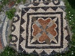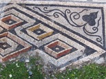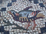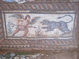 Kent içinden geçen yolun solunda ise kilise ve biraz ötede hamam kalıntıları bulunuyor. İki katlı hamamın da zemini mozaiklerle kaplıdır.
