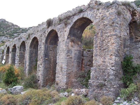 Kent çepeçevre surlarla çevrili olup, yolun sonunda tepeye kadar çıkıyor ve kentin akropolünü de çevreliyor. Surların bu bölümü oldukça iyi durumdadır.